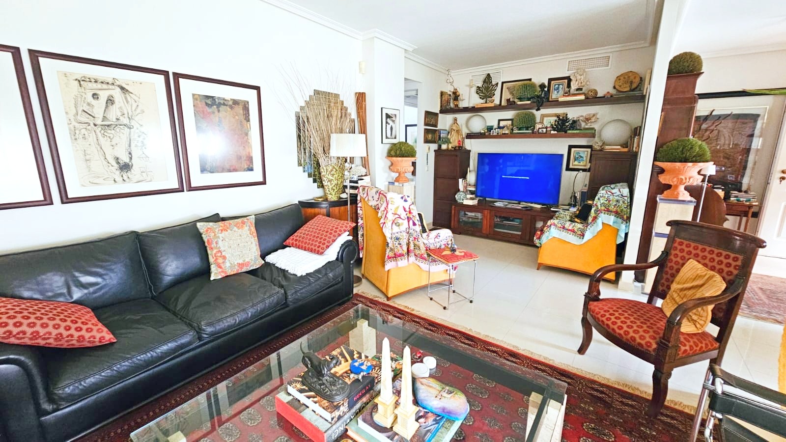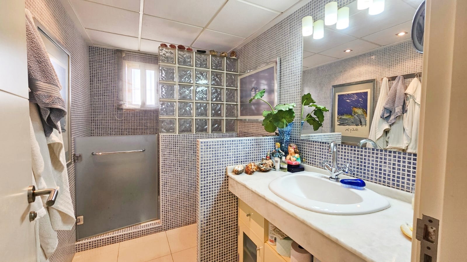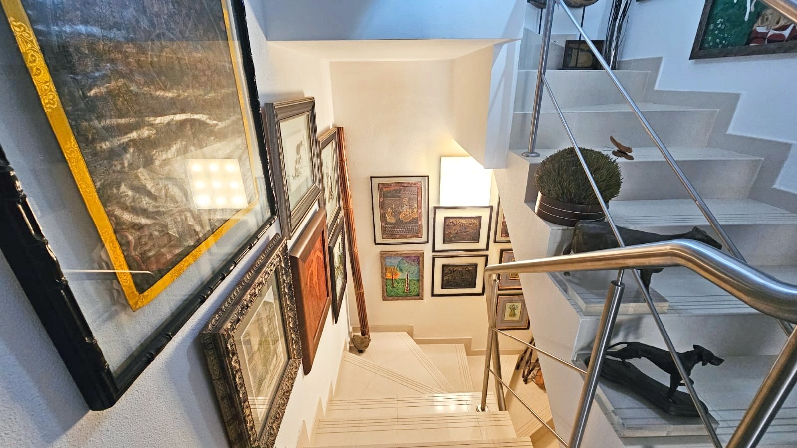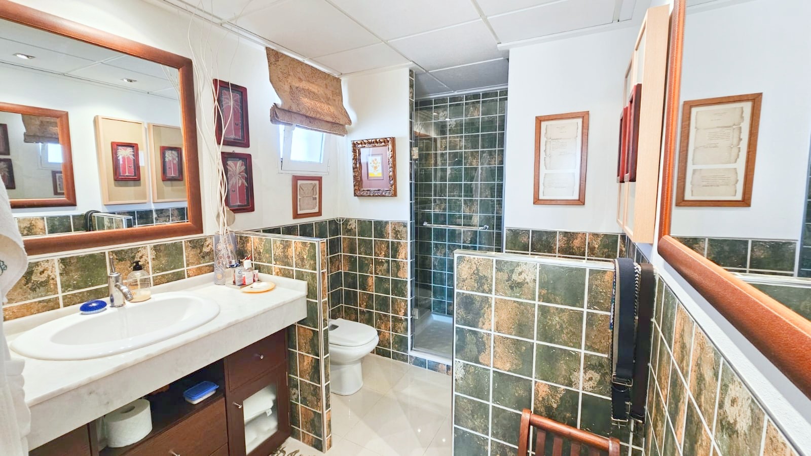 upstairs you find the master bedroom with ensuit bathroom and a big balcony that surrounds half of the property. Down stairs we find the basement, with space enough to put 3 cars inside. It's adapted with a sapace divided in living room area, one bedroom and a toilet.
