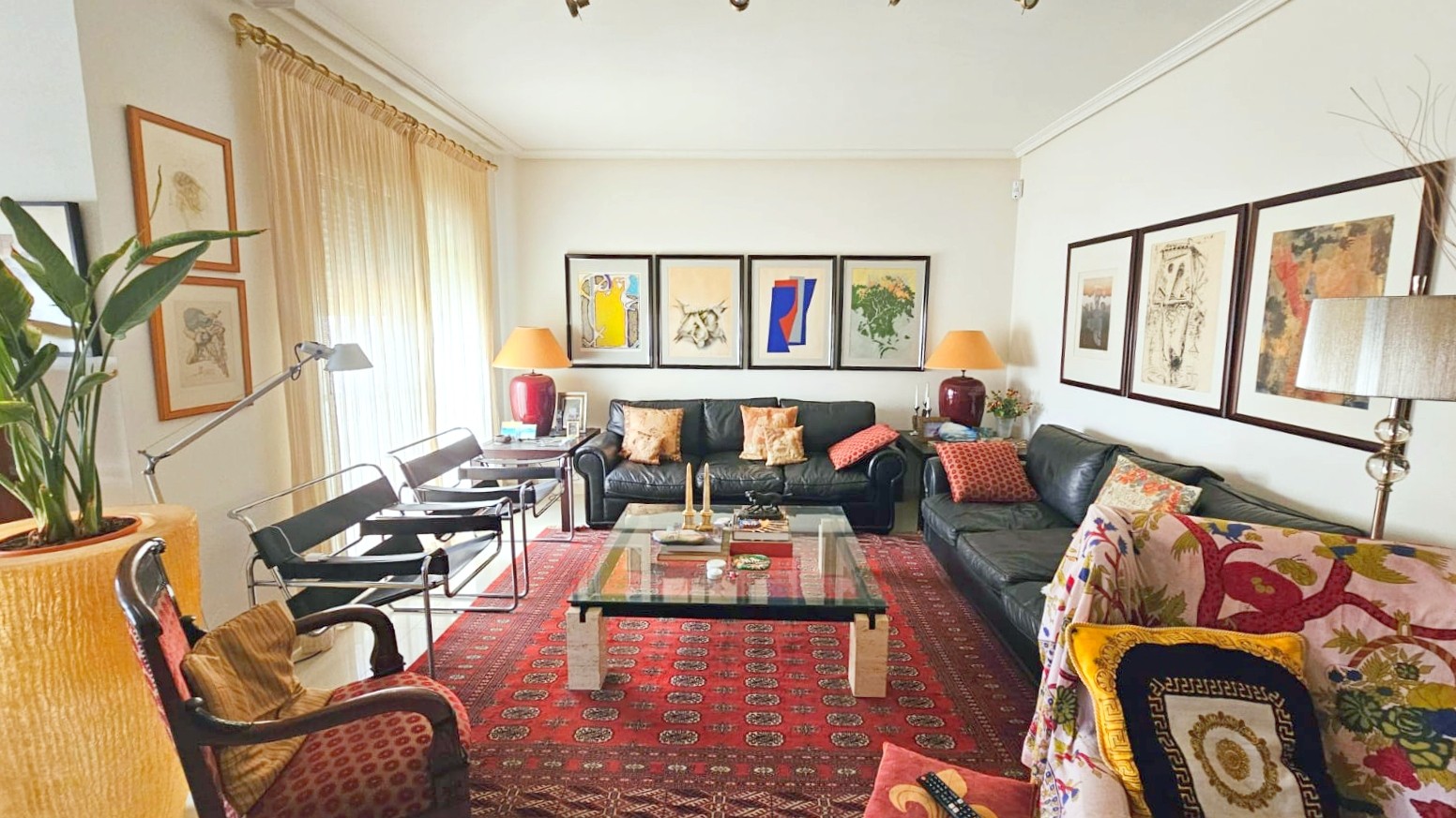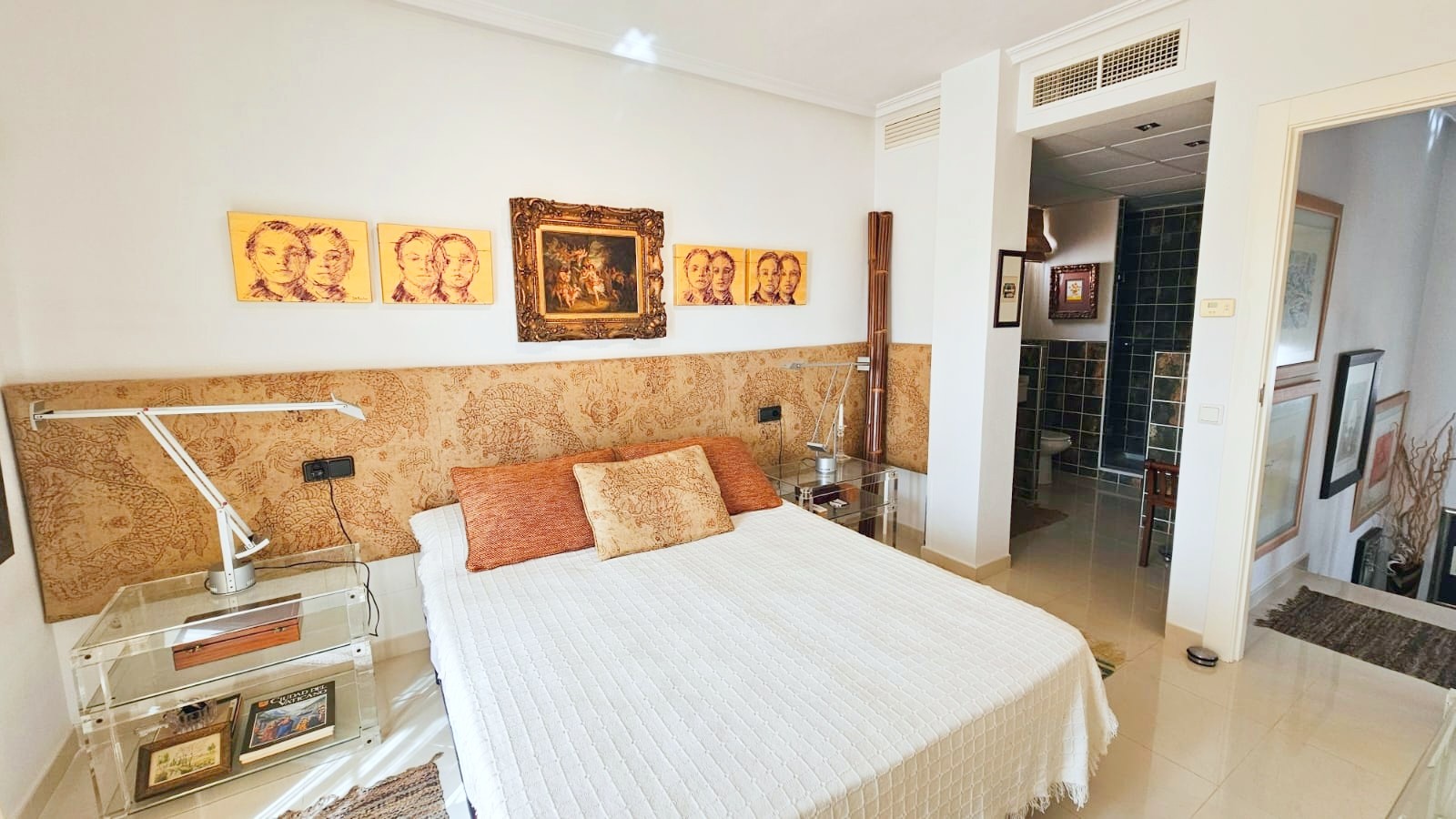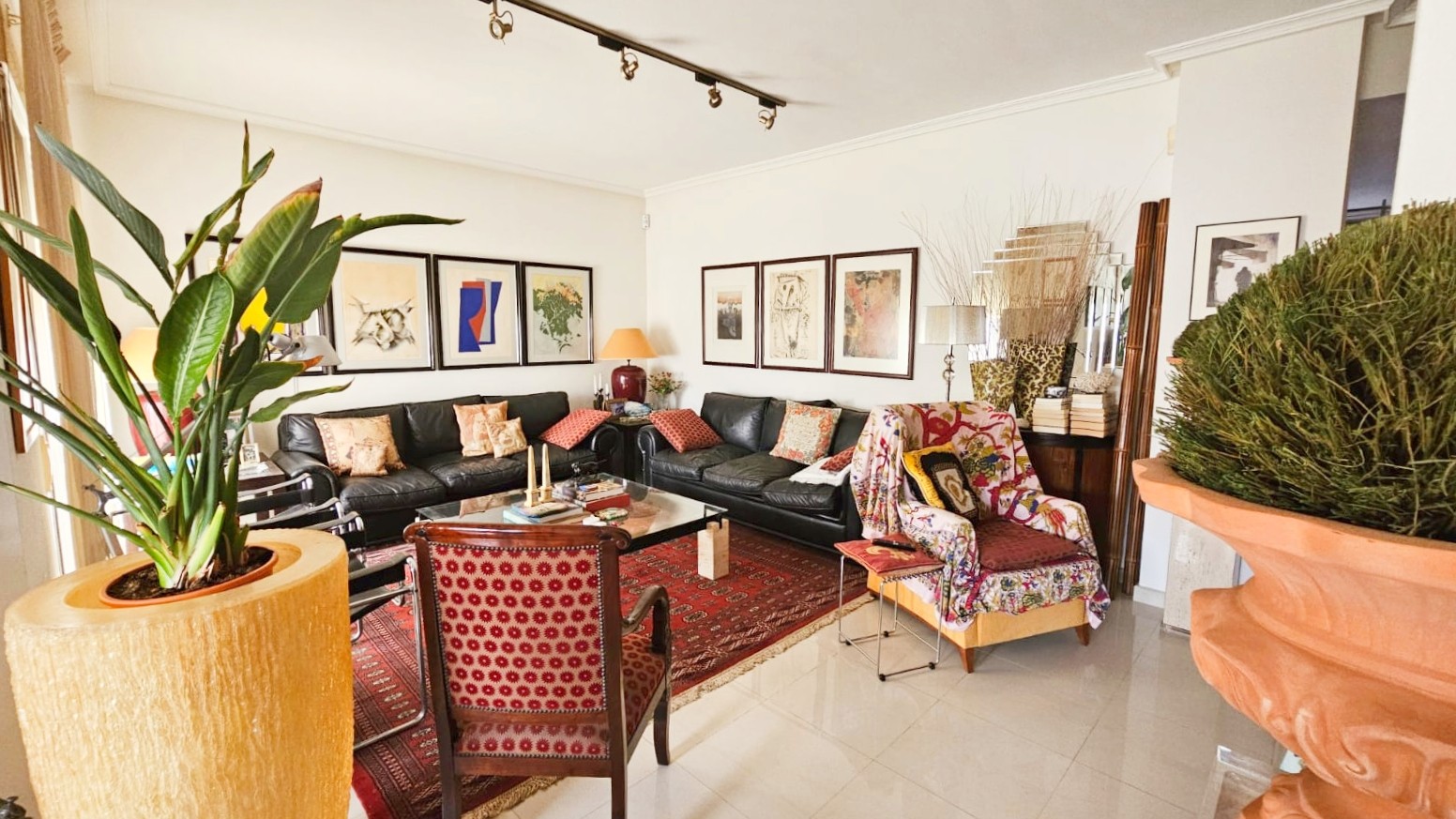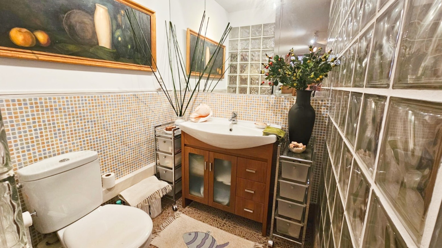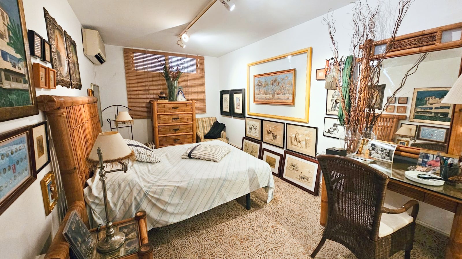 upstairs you find the master bedroom with ensuit bathroom and a big balcony that surrounds half of the property. Down stairs we find the basement, with space enough to put 3 cars inside. It's adapted with a sapace divided in living room area, one bedroom and a toilet.