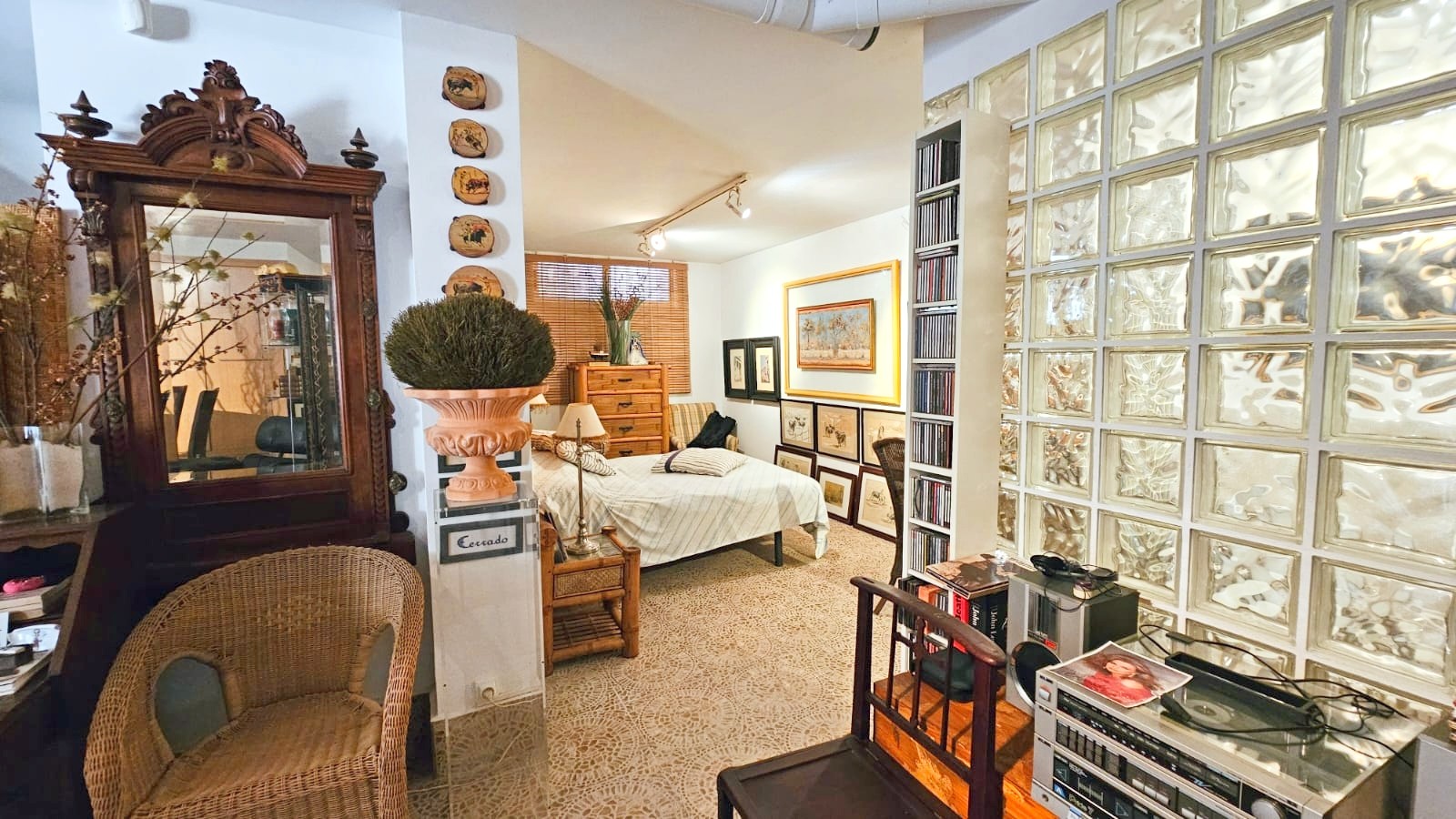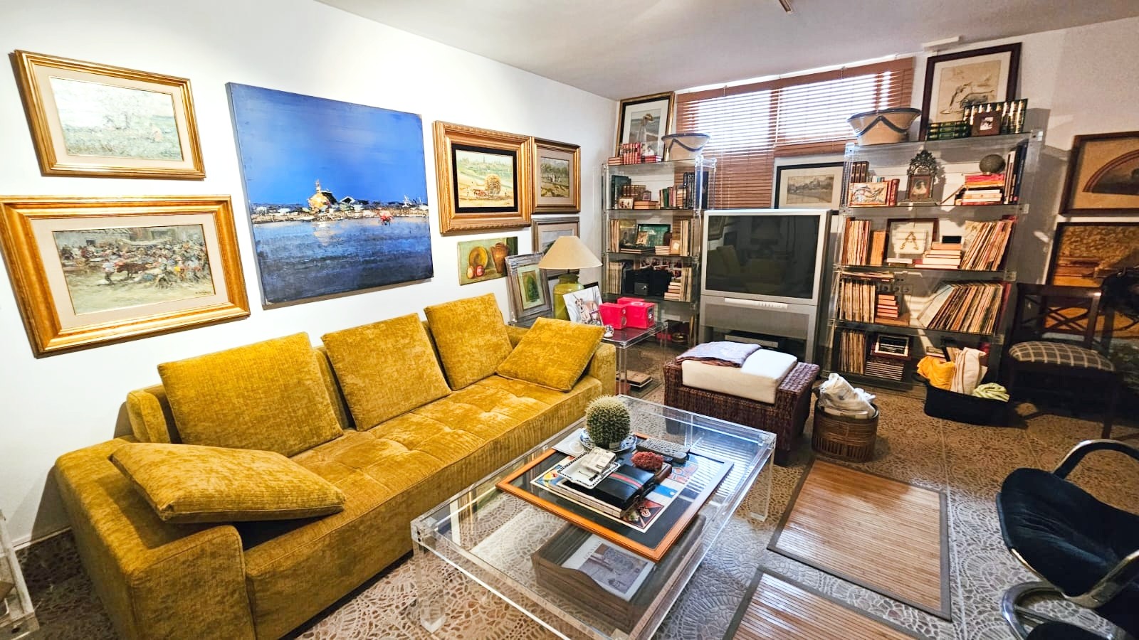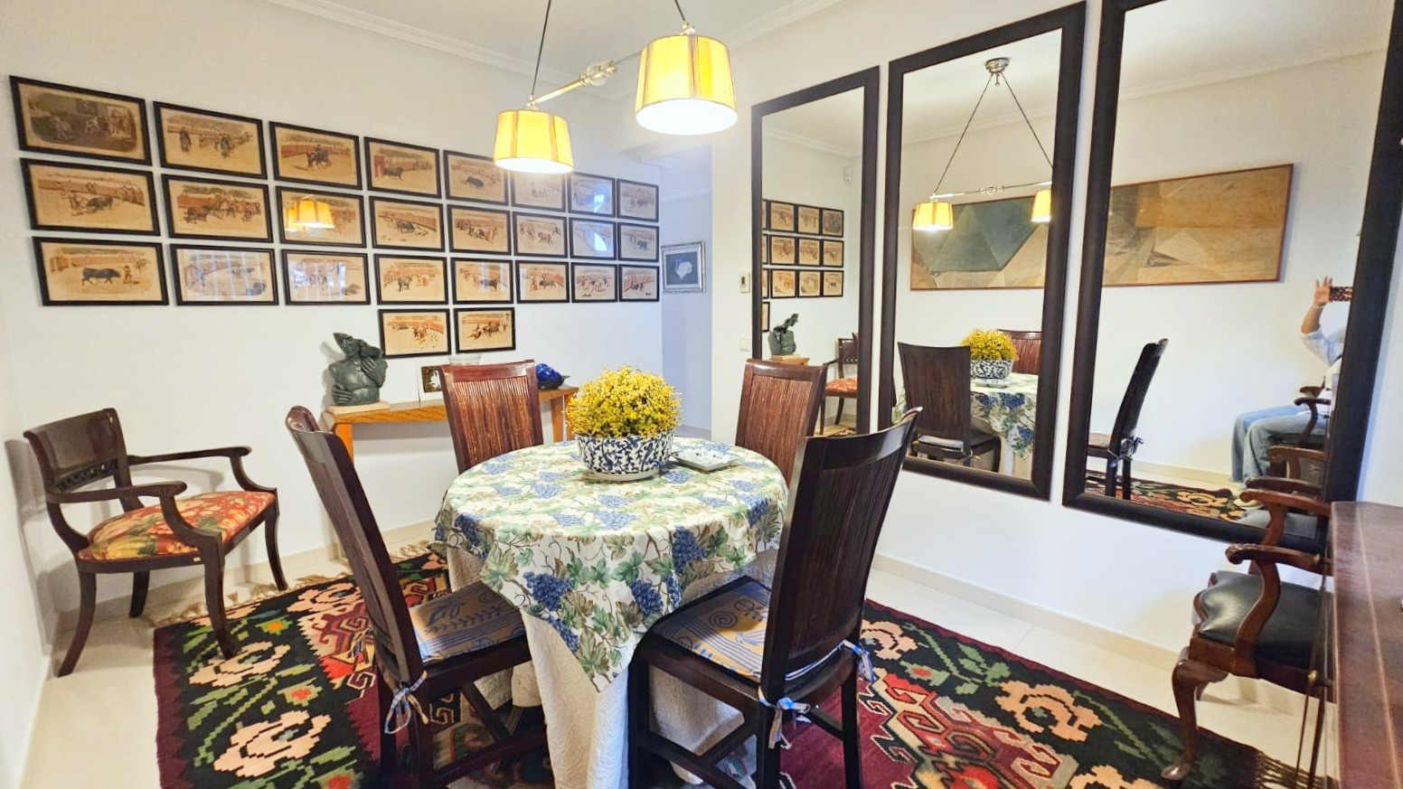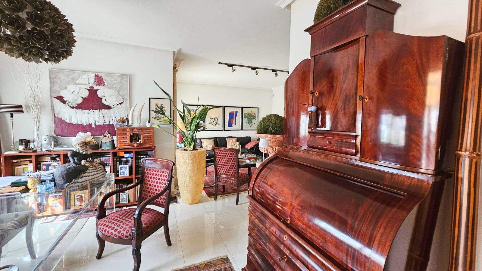 upstairs you find the master bedroom with ensuit bathroom and a big balcony that surrounds half of the property. Down stairs we find the basement, with space enough to put 3 cars inside. It's adapted with a sapace divided in living room area, one bedroom and a toilet.